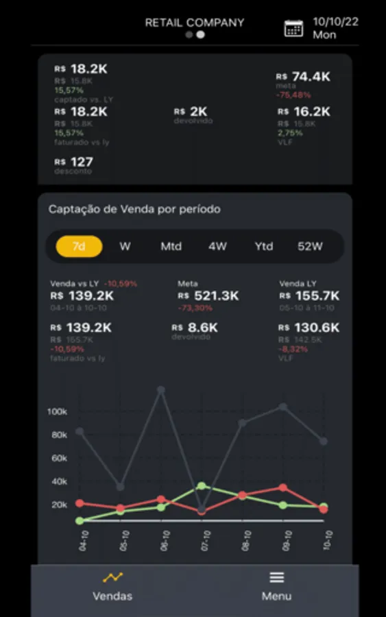 Take full control of your Retail network with our complete Dashboard, offering a wide range of indicators down to the seller and product level. With artificial intelligence, we generate simplified summaries of this data, presented directly in your Feed.