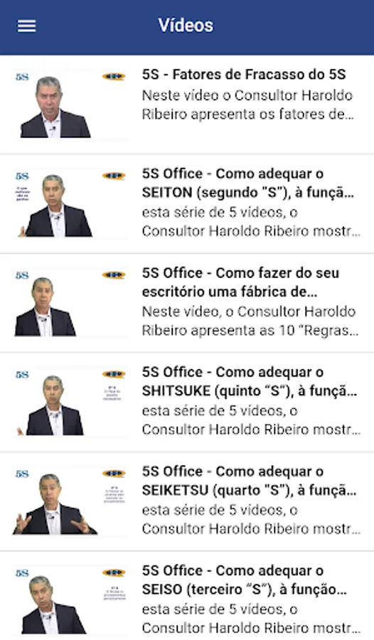 Harib5S is the most complete application on the 5S program created by consultant Haroldo Ribeiro, who has published more than 15 books on the topic since 1994. The application provides content and support material for the implementation of the 5S program in companies of any size, and also includes access to over 50 5S videos. All of this, free of charge.