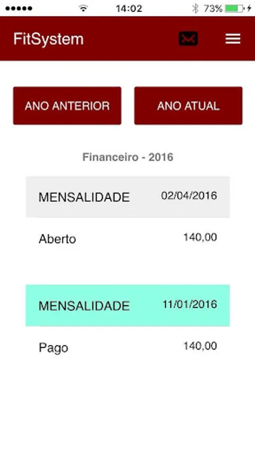 FitSystem application allows the student to the academy to access various information in a simplified manner.