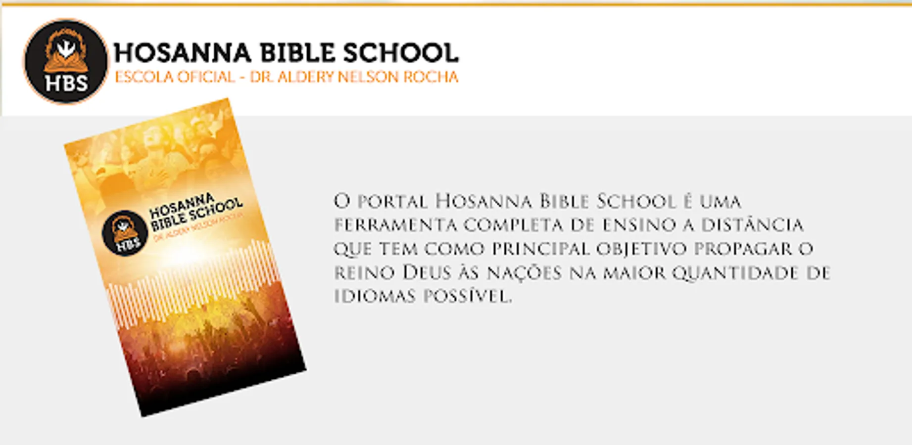 The Hosanna Bible School portal is a complete distance learning tool whose main objective is to spread the kingdom of God to the nations in as many languages as possible.
