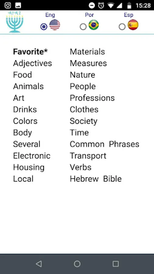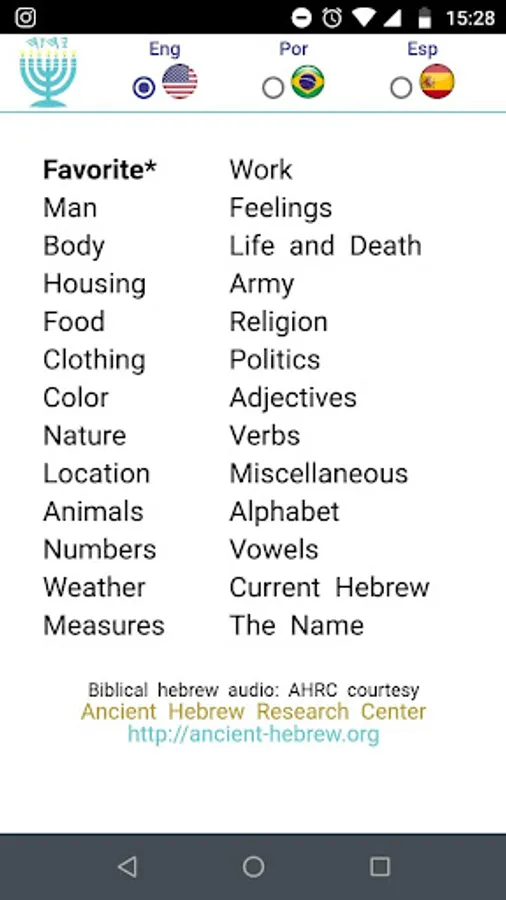 - You can choose the language of the translation in audio and writing: English, Portuguese or Spanish.
