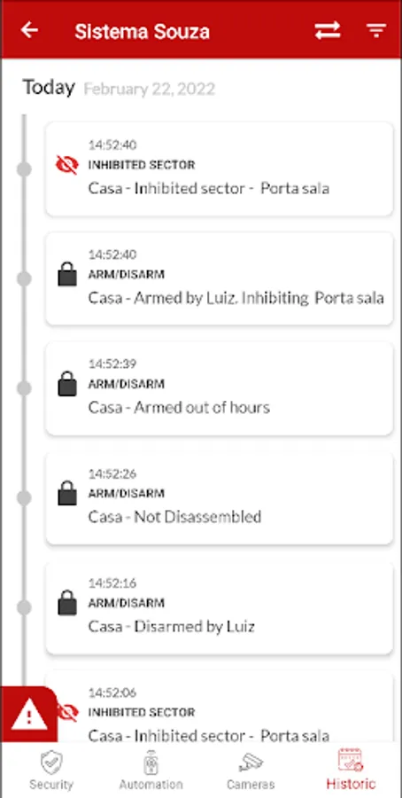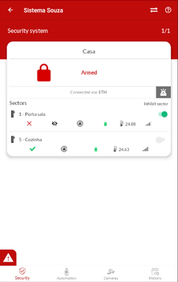 - Carry out security actions such as: Arm, Disarm and Internal Arm (Stay) remotely