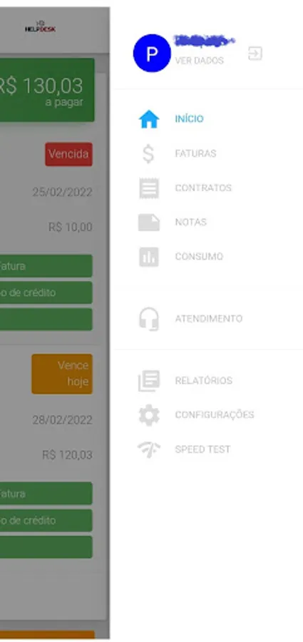 In this application, you can view your invoices, open a call, pay via PIX, Card or print your ticket, for a better ease and experience with our company.