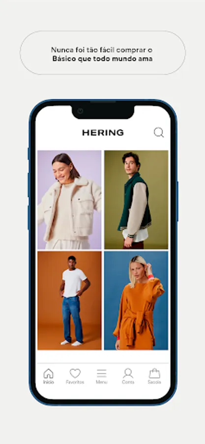 For Hering, Basic is the original that reinvents itself. In constant updating, we always want to bring the best shopping experience to our customers. Therefore, we present the new HERING APP with a renewed look and different features that will facilitate the consumer's journey. Our Basic, comfortable, timeless and versatile pieces, in one place, just a click away.