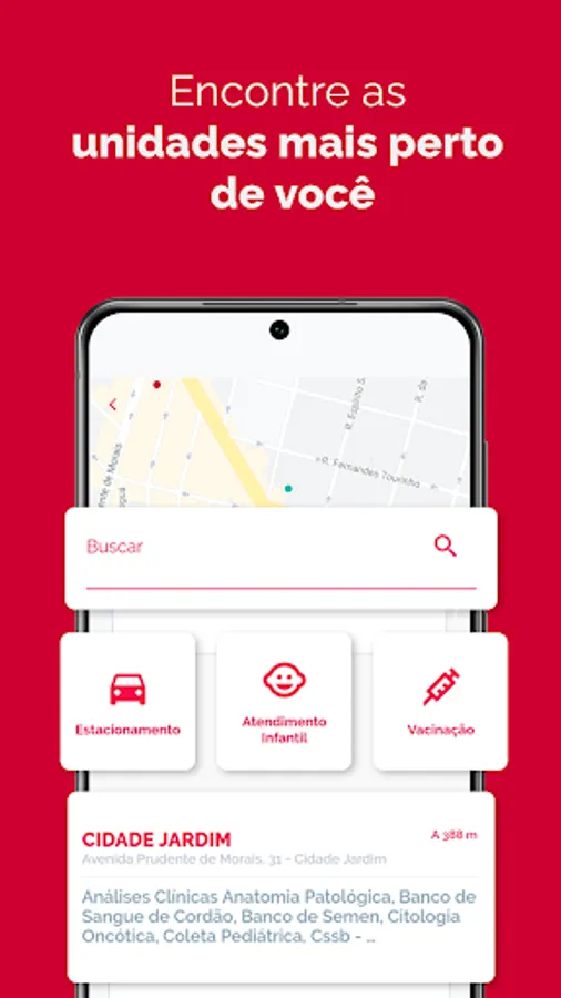 Use the geolocation service to check which laboratory is closest to you in the metropolitan regions of São Paulo - SP and Belo Horizonte - MG, in addition to all the services they offer, opening hours and collection. So you can schedule your exams wherever it's most convenient for you.