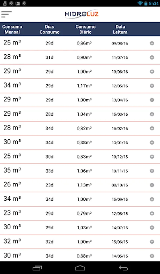• View your entire history of detailed consumption, as consumer information, average consumption, total and common area regarding his residence;