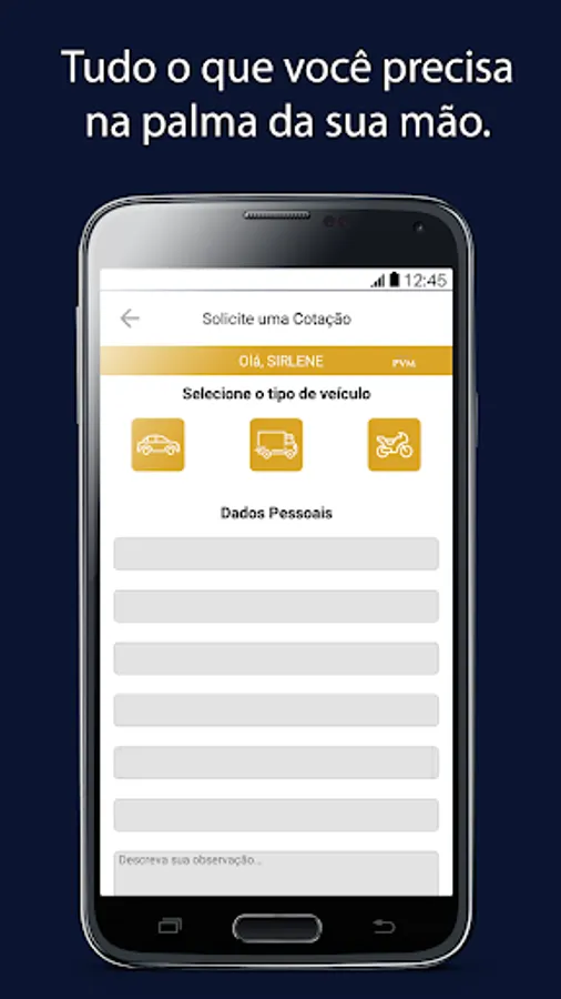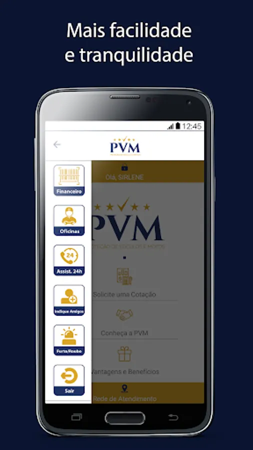 To start using the application just download it free, use your CPF and password provided by PVM Vehicle Protection.