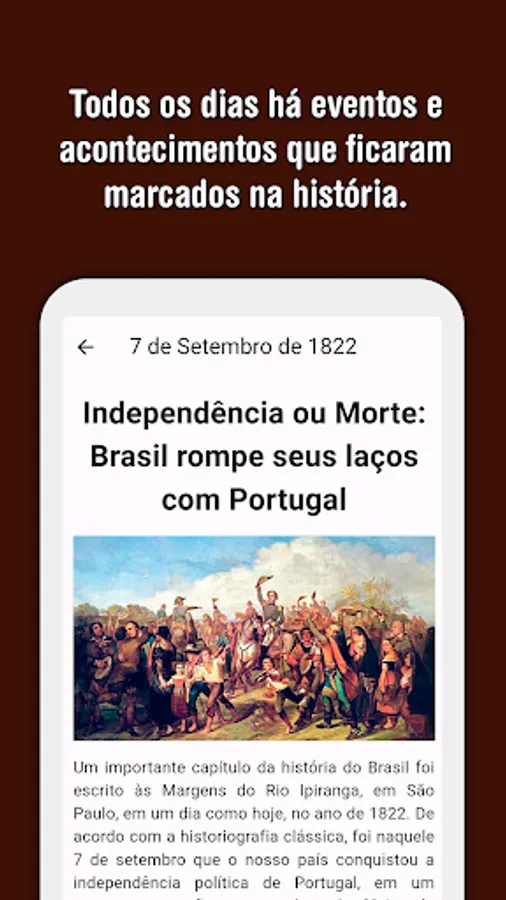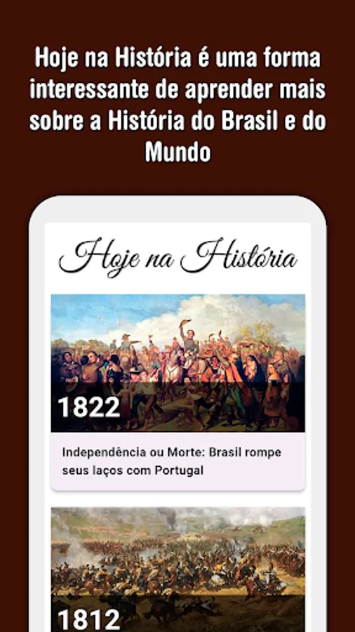 Welcome to the História na História APP - your complete app for exploring and understanding the events that have shaped Brazil and the world over the centuries. In this engaging and informative app, we invite you to embark on a fascinating journey through time, exploring the pivotal moments and compelling stories that shaped our collective history.