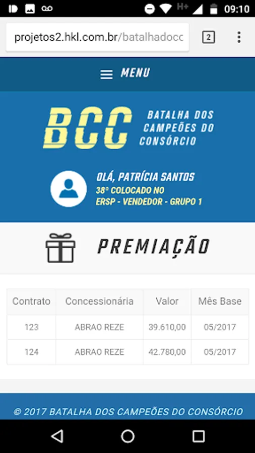 Monitoring sales results, ranking, regulations, informative and shareable content of the campaign Battle of the Consortium Champions 2017