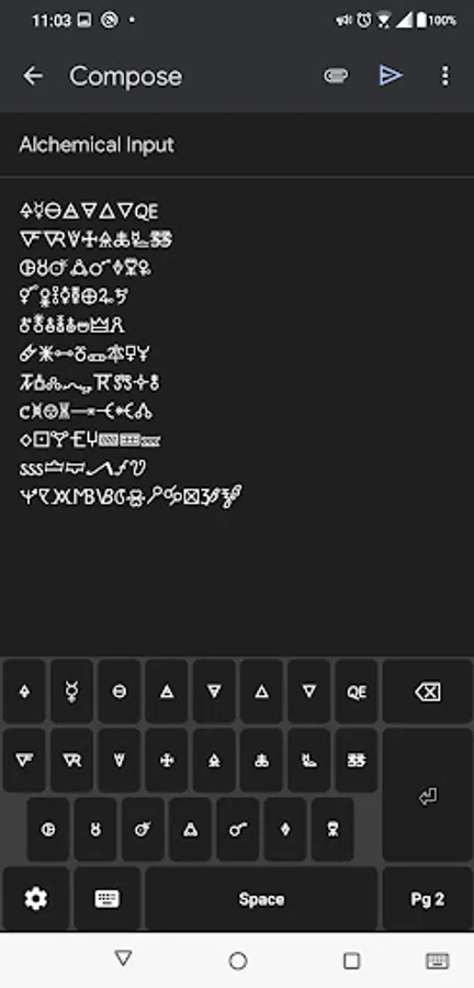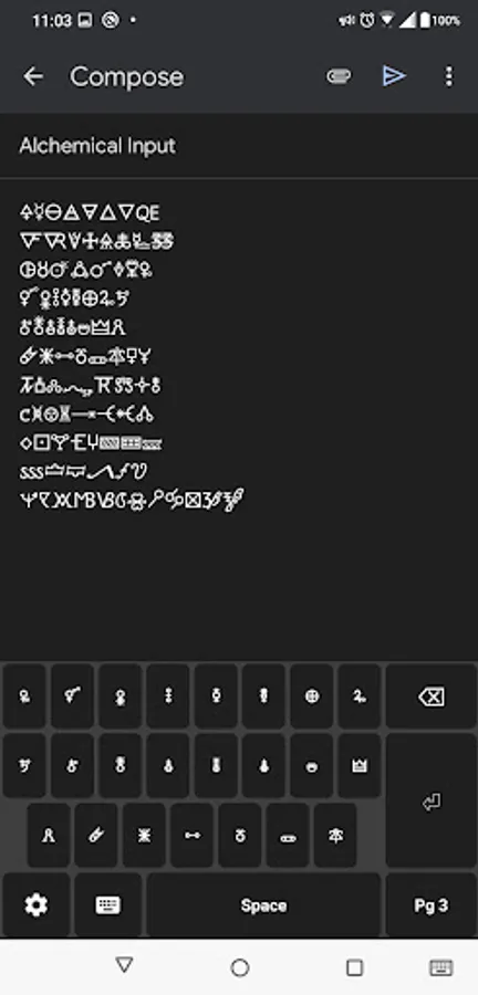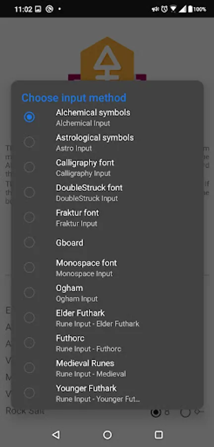 When using an app, Android will show either a keyboard icon at the top or bottom bar. By clicking on it, you can choose which keyboard you want to use. Select Alchemical Input and start writing with the Alchemical symbols!