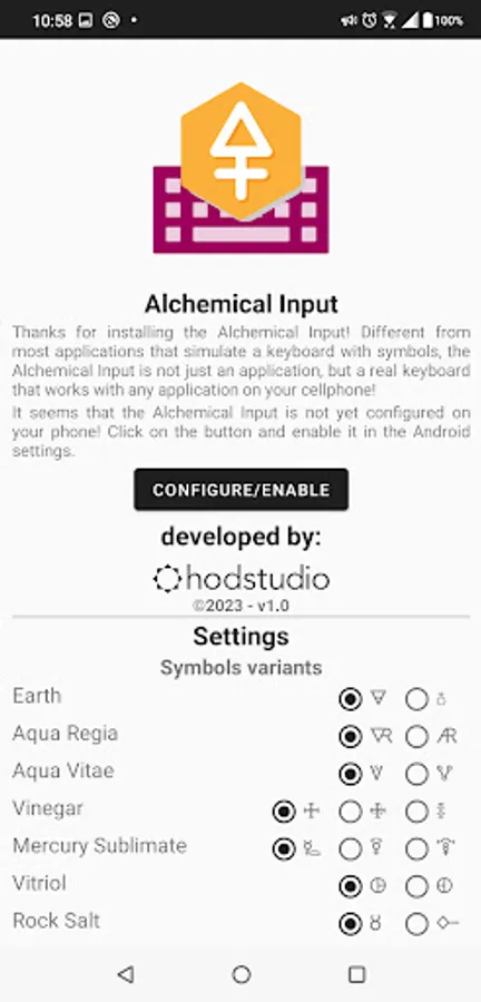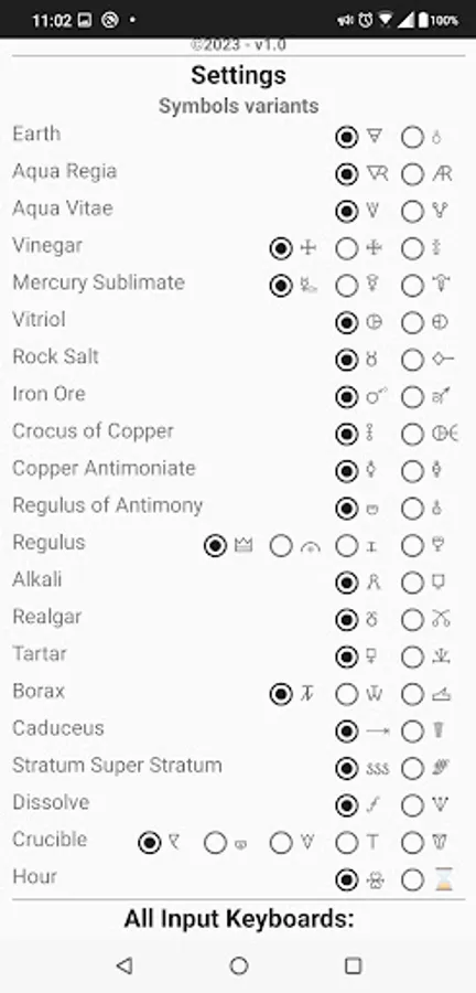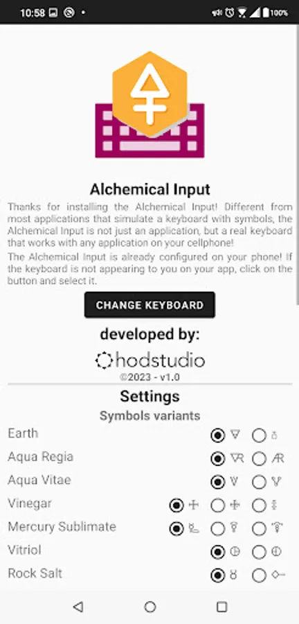 Alchemical Input aims to spread and facilitate the use of the Alchemical symbols by anyone. Because itโs a keyboard, operational system can display an default alerts to inform that keyboards can capture data typed by users and send them to third parties. That is not the case with Alchemical Input. We collect and process only data on app usage statistics, as well as error/crash information.