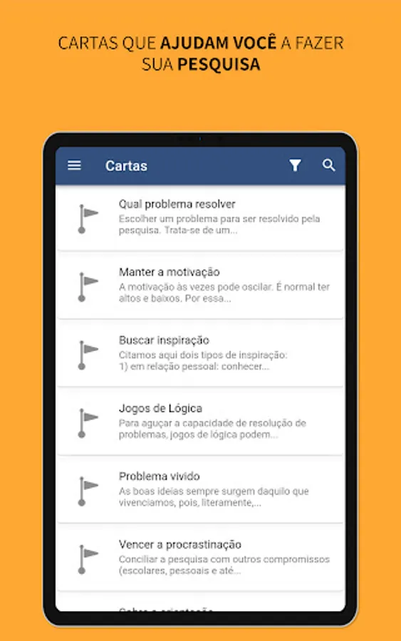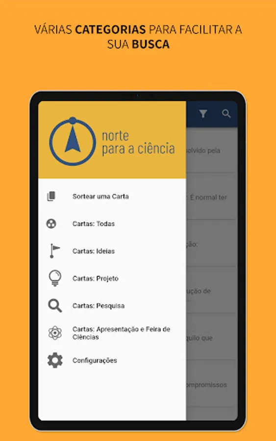 Norte para a Ciência is an application that promotes research through cards. These letters provide tips and facilitate the realization of scientific research projects.