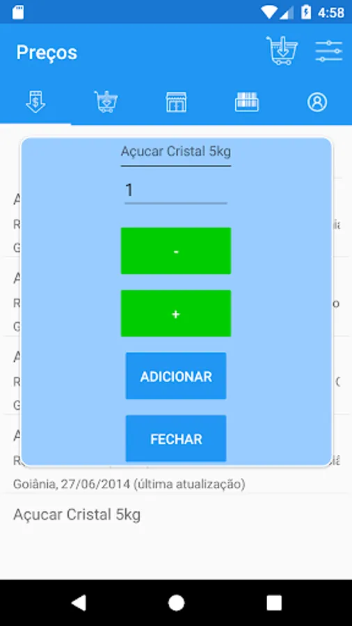 With SHOPPING function in the app, you can now monitor the prices that stores report in the gondola. Not always informed the prices on the shelves of the shops are up to date in their own systems.