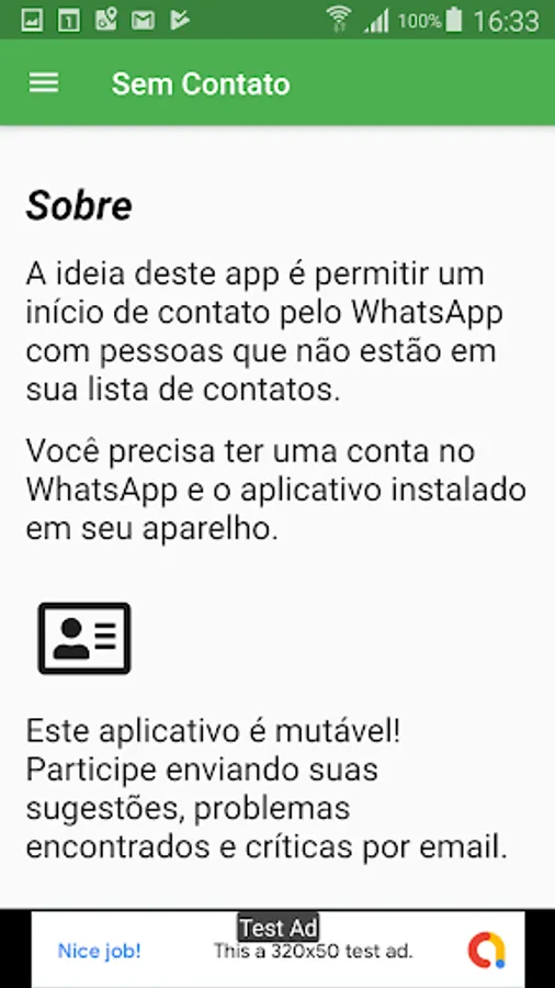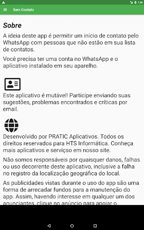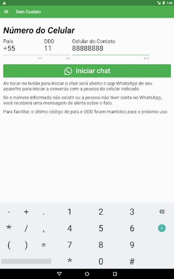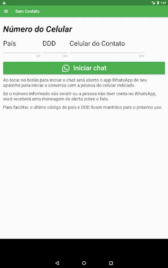 You no longer need to enter unknown people in your contacts catalog to send messages through WhatsApp, just use this app to start a conversation. Just have the complete cell phone number you want to start a conversation with and that's it.