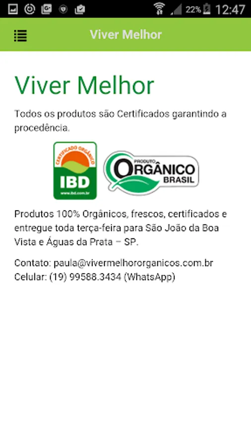 Products 100% Organic, fresh, certified and delivered every Tuesday for São João da Boa Vista and Silver Waters - SP.