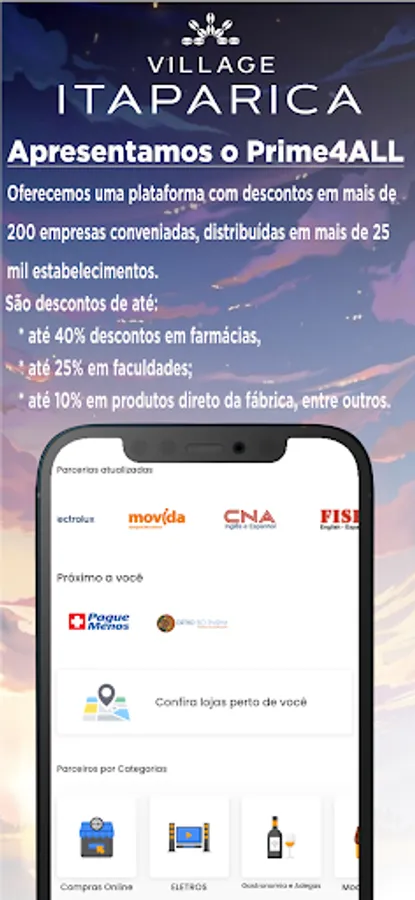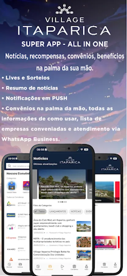 • Agreements: The application will show you the benefits closest to your current location, or the place you choose, enjoy all the benefits you have by owning Village Itaparica and being part of the wider network of exclusive offers for members, with discounts at more than 25,000 points of sale and websites.