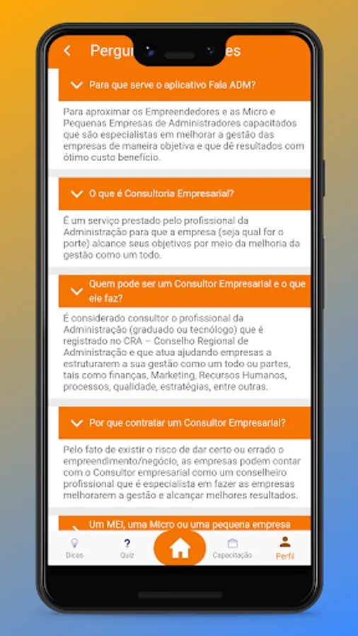 The Fala ADM application is the intelligent connection between Business Consultants focused on micro and small businesses with entrepreneurs looking for the evolution of their business.