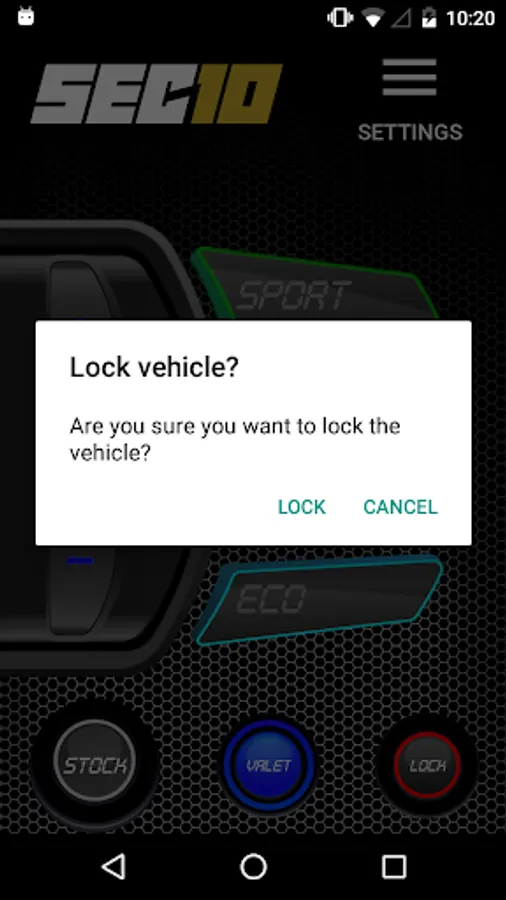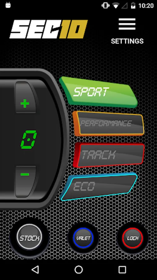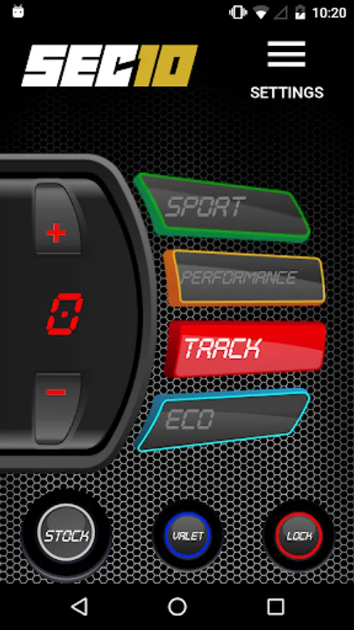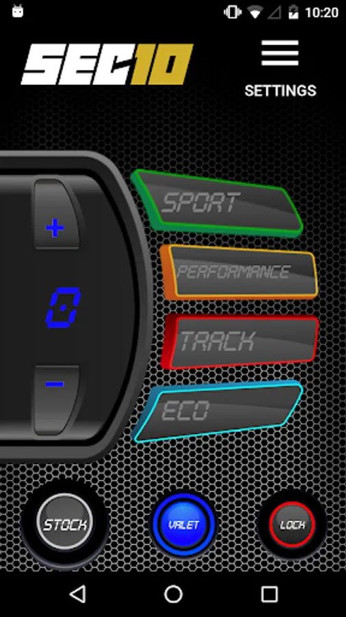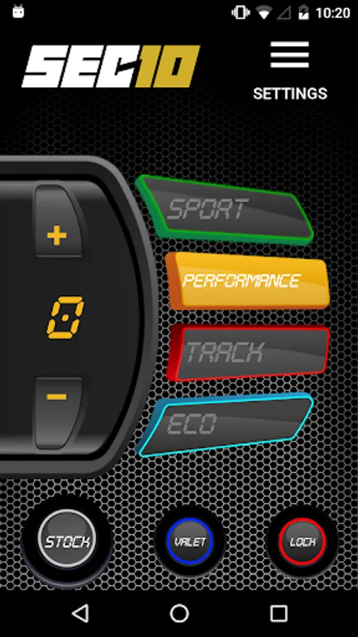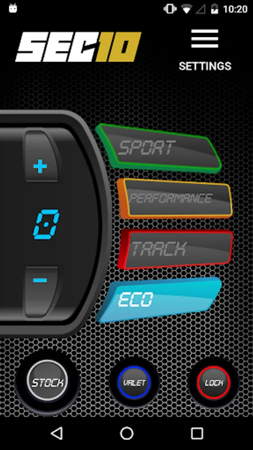 You can control all SEC10 features and driving modes from your smartphone: Stock, Eco, Sport, Performance, Track, Valet and Pedal Lock
