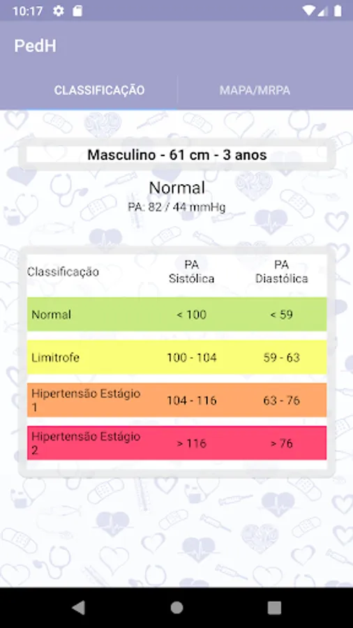 PedH helps to classify blood pressure in children and adolescents. The application evaluates the gender, age and height of children to determine their blood pressure ranges and their information about ABPM and MRPA.