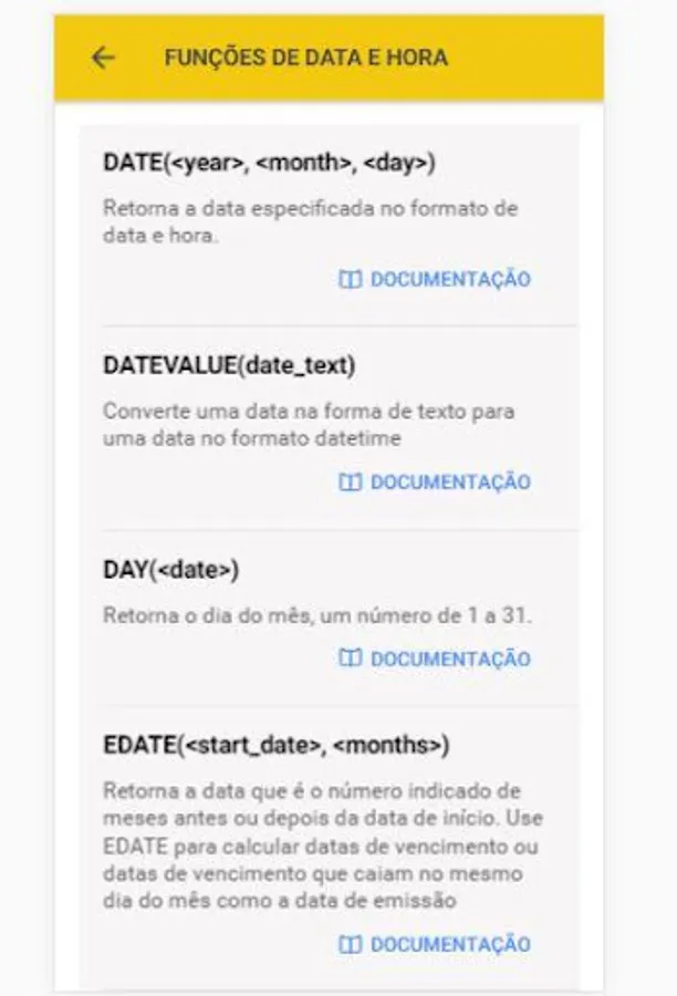 The application contains the functions, descriptions in Portuguese, English and Spanish for each function and the link to the documentation for each function.