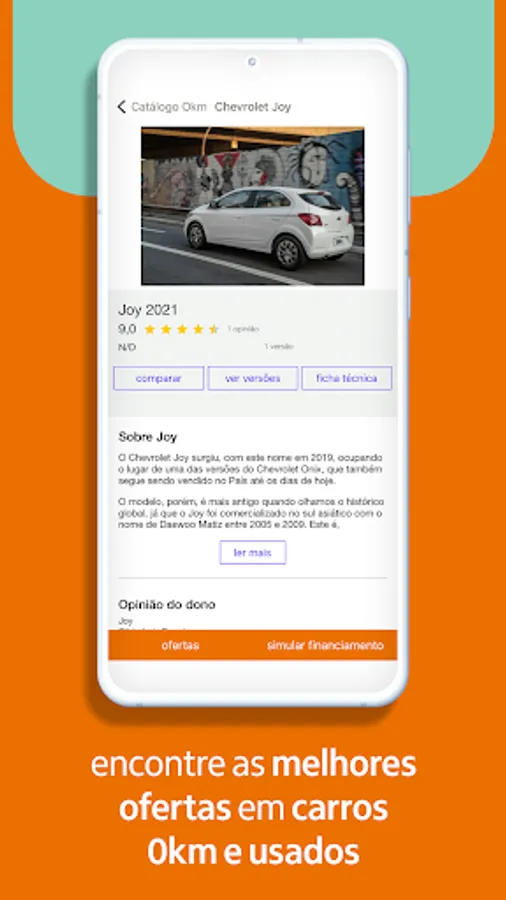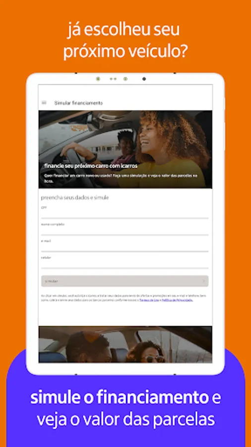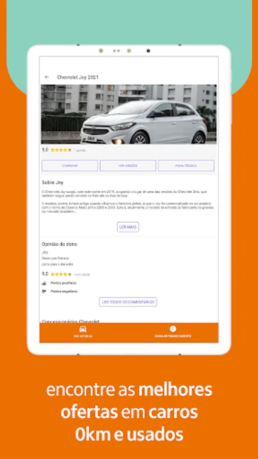 ◉ Vehicle Financing simulation: make a vehicle financing simulation directly in the app, discover the value of used, semi-new and new car installments, and guarantee the car of your dreams.
