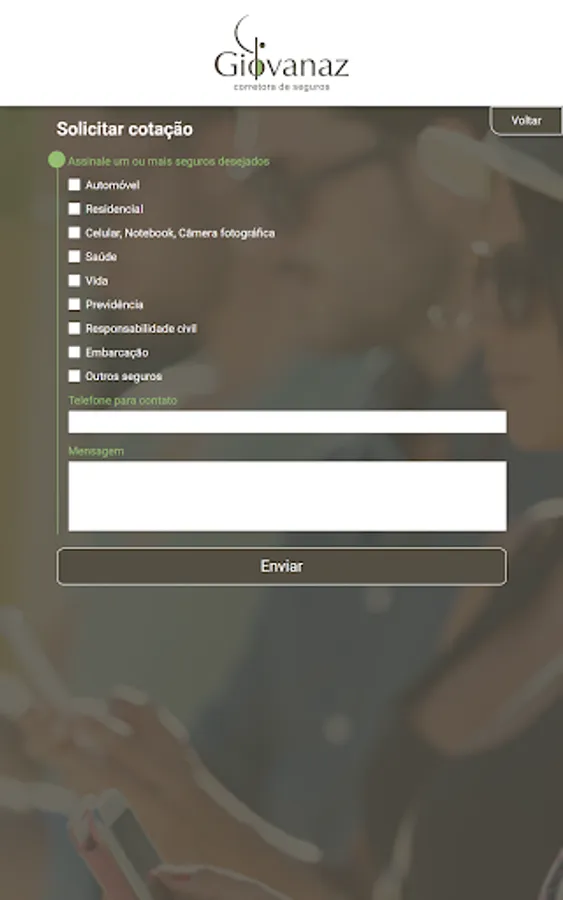 Giovanaz is an application that allows you to quickly, simply and intuitively consult on your smartphone the main information on your Auto, Home, and Life insurances that were contracted by your insurance broker.