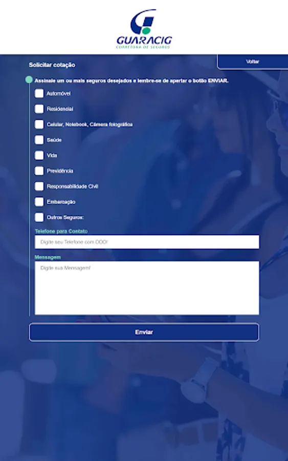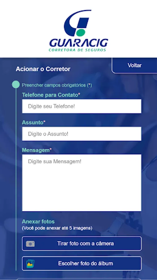 The application is an exclusive channel of communication between you and your insurance broker, to deal with matters related to your insurance. The application contains the following features for you to be 100% organized and calm with your insurance: