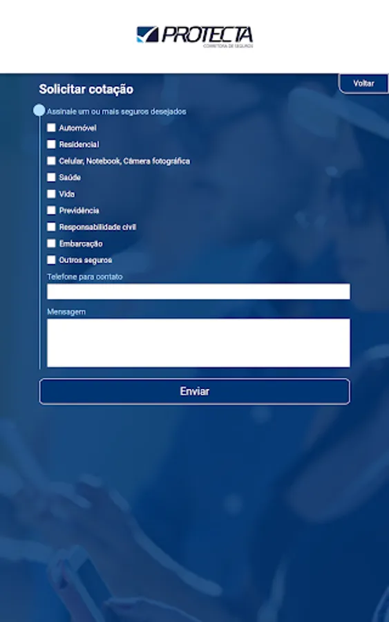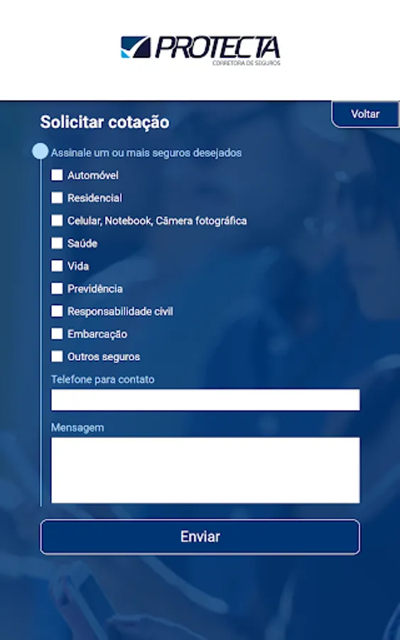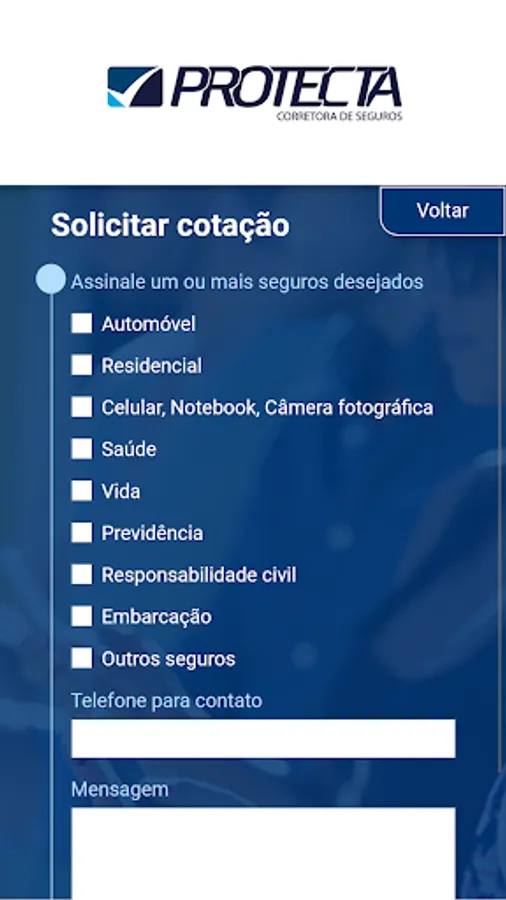 The application is an exclusive channel of communication between you and your insurance broker, to deal with matters related to your insurance. The application contains the following features for you to be 100% organized and calm with your insurance: