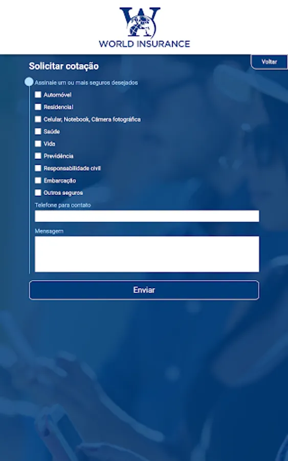 World Insurance is an application that allows you to consult on your smartphone, quickly, simply and intuitively, the main information about your Auto, Home and Life insurance policies that were contracted by your insurance broker.