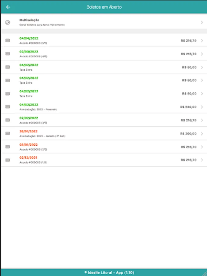 Idealle Garantidora - Application for receiving slips and generation of duplicates, announcements, documents and history of paid slips.