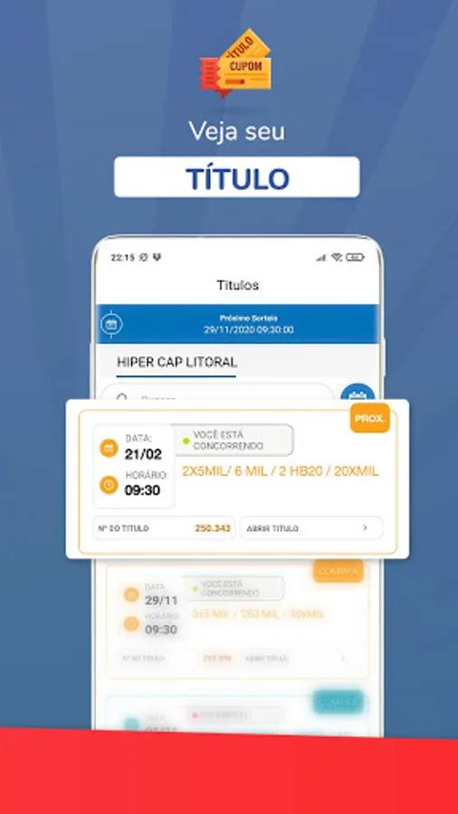By purchasing your title and assigning the Right of Redemption, you help the beneficiary Institution and compete for incredible prizes. But calm down, if you win, the prize will be all yours, as the Redemption Right ceded refers to a percentage of the amount paid at the time of purchase of the security. There are already thousands of winners and you can be too! Come help and compete!