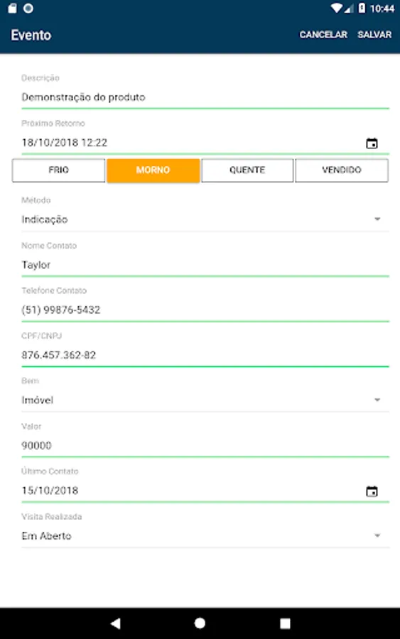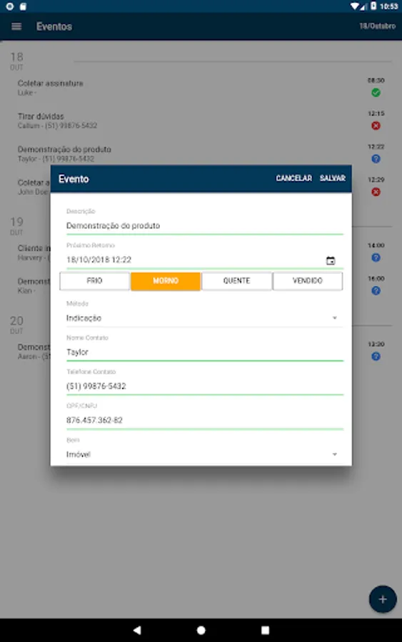 Allows the vendor to insert, change and track their calendar directly from their smartphone / tablet, integrating the data to the "Gescon" system used by the sales representative.