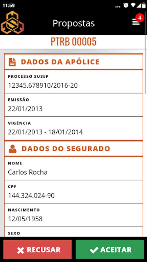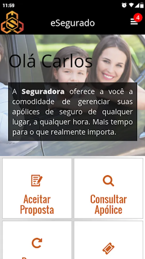 eSegurado demonstration, a set of systems and applications for insurers, which enables remote selling insurance over the Internet according to CNSP Resolution 294, in addition to providing a relationship channel with its policyholders.