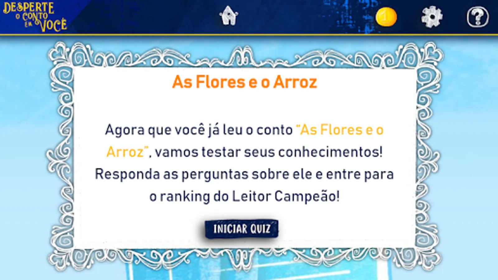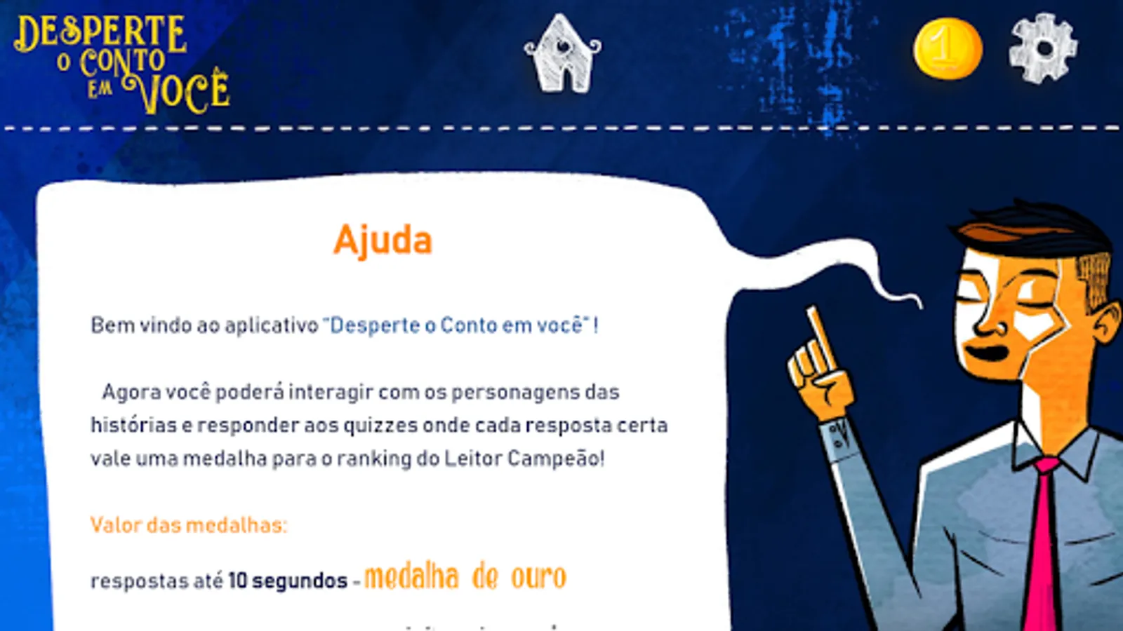 The book was created with the objective to present metaphoric tales to the juvenile public, stimulating reflection about several values such as respect, solidarity, friendship, tolerance, persistence, self-trust, proactivity among others, with beutiful and colorful ilustrations. It also brings situations with text interpretation, through the smartphone app, that contains quizzes about the stories and awards with medals and trophies. It also proposes challenges for life, so the readers can put in practice what they learned from the tales.