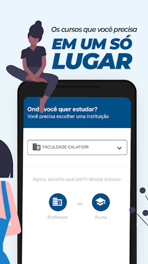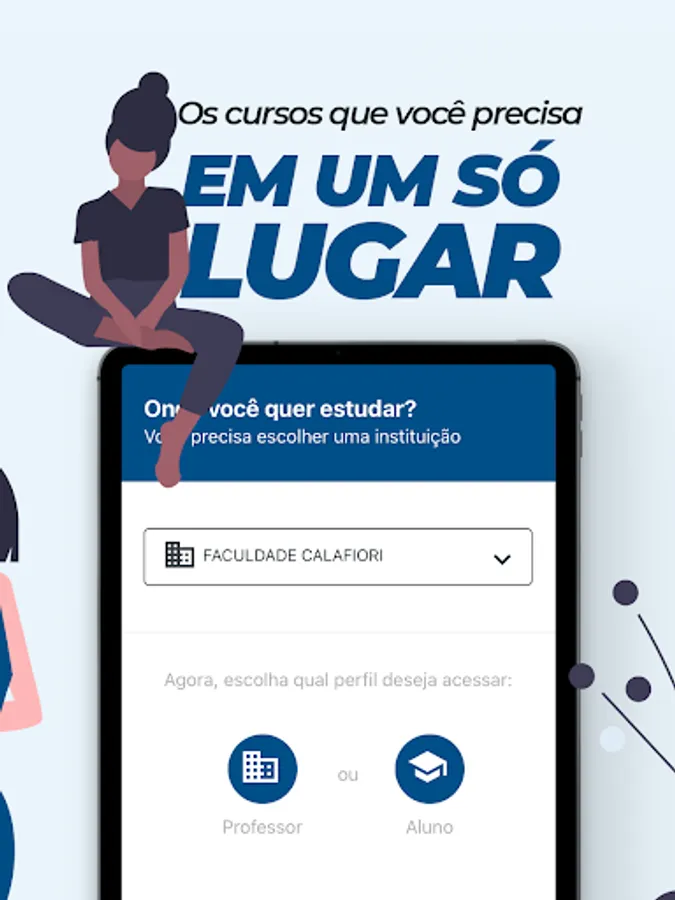 The application version of the Online Platform - Faculdade Calafiori provides an engaging experience for teachers and students. This version is called the Student's Virtual Room and the Teacher's Virtual Room. All application version services follow a cloud services architecture, providing agility and efficiency for their students. With the application version - Faculdade Calafiori, users (teachers and / or students) access: