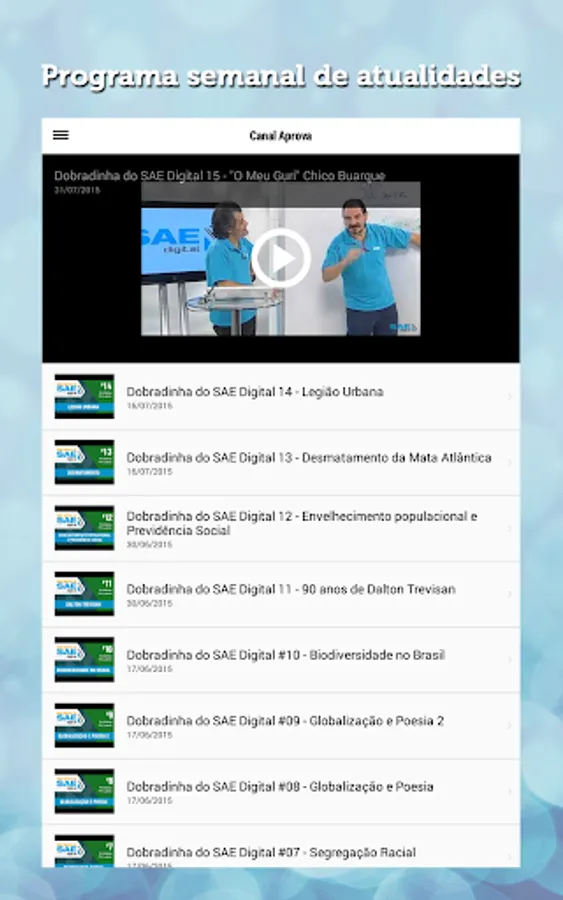 • Dobradinha SAE Digital: Weekly program updates and writing with specialized teachers.