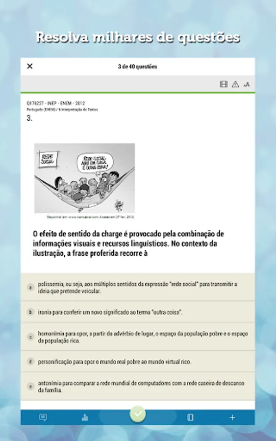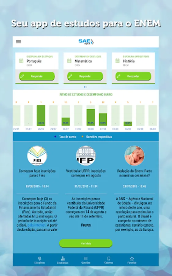 Through the App ENEM Questions - Digital SAE developed by SAE Digital you have access to various study tools through your smartphone. It is useful. It's simple. It's free!