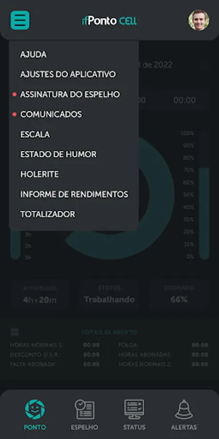 Application functionalities can be made available according to needs. This means that the manager or person responsible for the ifPonto system in each company has the flexibility to configure and make available which functionalities will be visible to each group of employees.