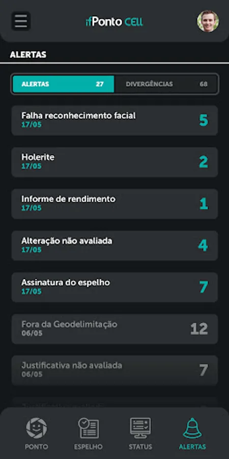 If any essential functionality is not being displayed, it will be necessary to contact the manager or the person responsible for the ifPonto system in your company's Human Resources department. Only they will be able to enable the corresponding functionality on their device, through the ifPonto system.