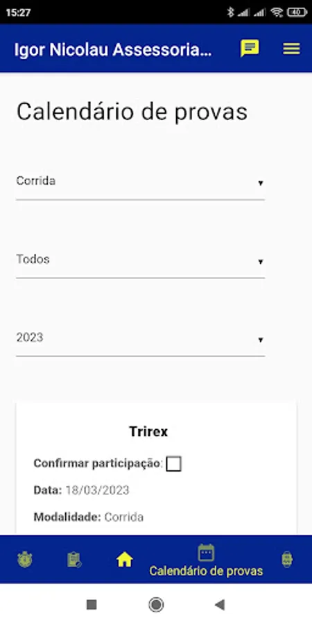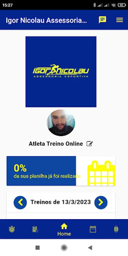 Application for athletes from Assessoria Esportiva Igor Nicolau which has the following features:
