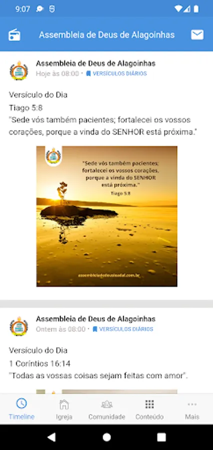 Application created to connect church members, facilitating their communication and uniting all church content in one place. Receive first-hand news, announcements, videos, events and everything else that the church involves.