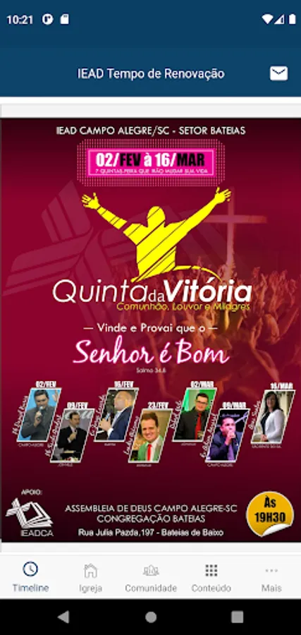 Application created to connect church members, facilitating their communication and uniting all church content in one place. Get first-hand news, notices, videos, events and everything else the church involves.