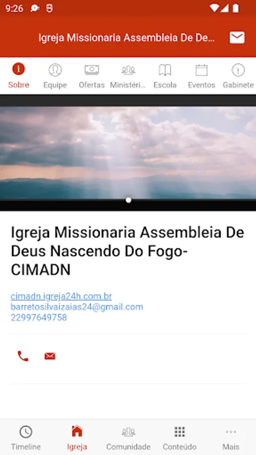 Application created to connect church members, facilitating their communication and uniting all church content in one place. Receive first-hand news, announcements, videos, events and everything else that the church involves.