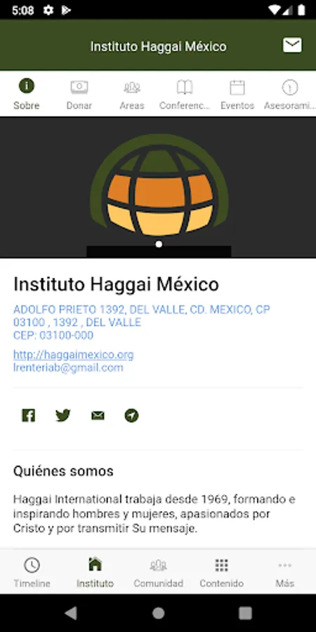- Information of the Institute (address, telephone, website, social networks, pastors)