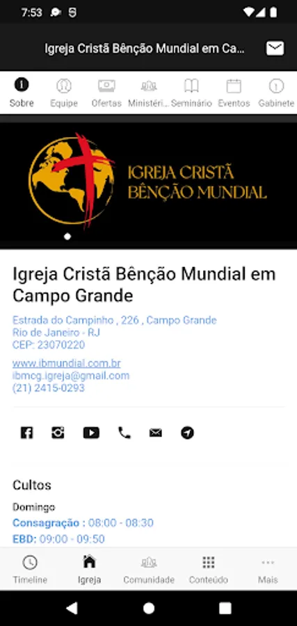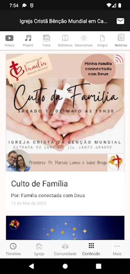 Application created to connect the members of the church, facilitating their communication and uniting all the contents of the church in one place. Receive first hand the news, notices, videos, events and everything else that the church involves.