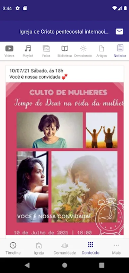 Application created to connect church members, facilitating their communication and uniting all church content in one place. Get first-hand news, notices, videos, events and everything else the church involves.