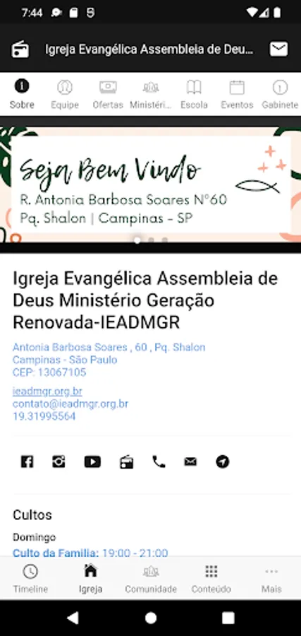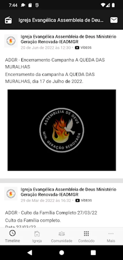 Application created to connect church members, facilitating their communication and uniting all church content in one place. Receive first-hand news, announcements, videos, events and everything else that the church involves.