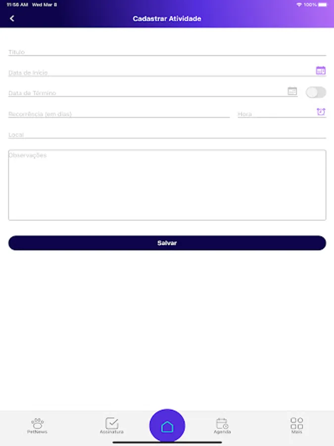 Have everything you need to control and organize your pet's life in the palm of your hand, in a simple and intuitive way. Within our application, you have several features that will simplify your routine and your pet's life.