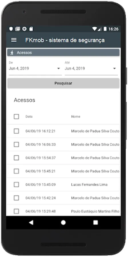 All accesses made in controlled locations are available for consultation online, through a report available in the application. This report also shows the access made by visitors and accredited service providers at the entrance through the invitation.