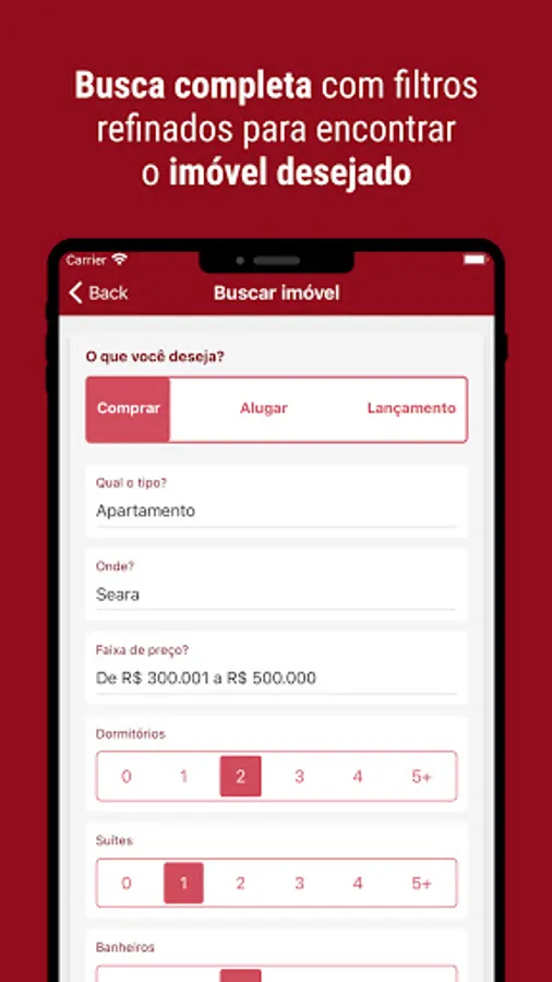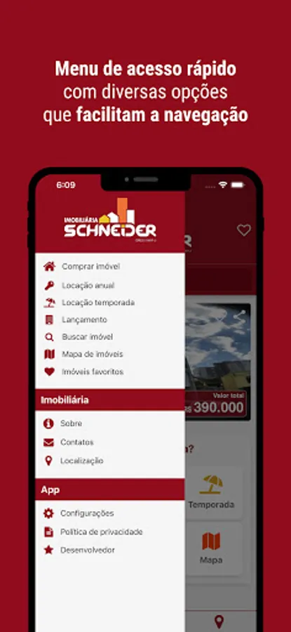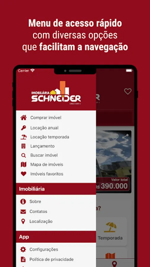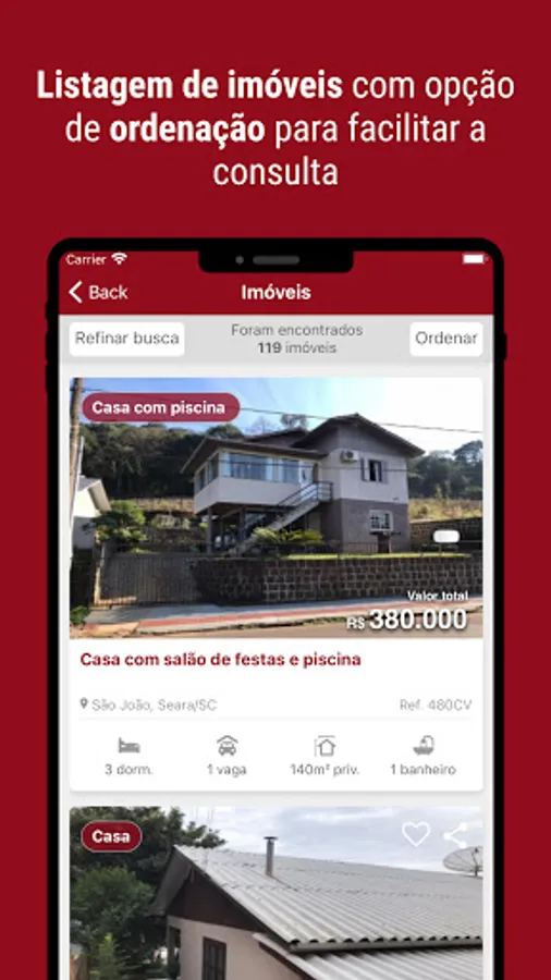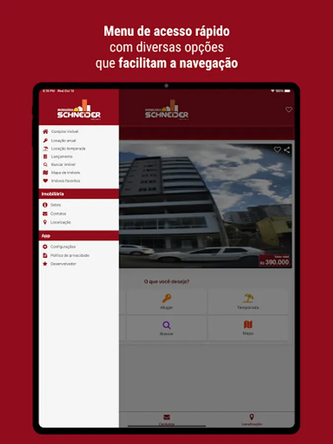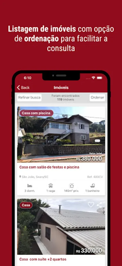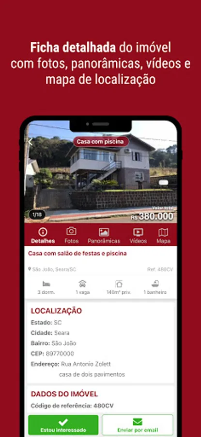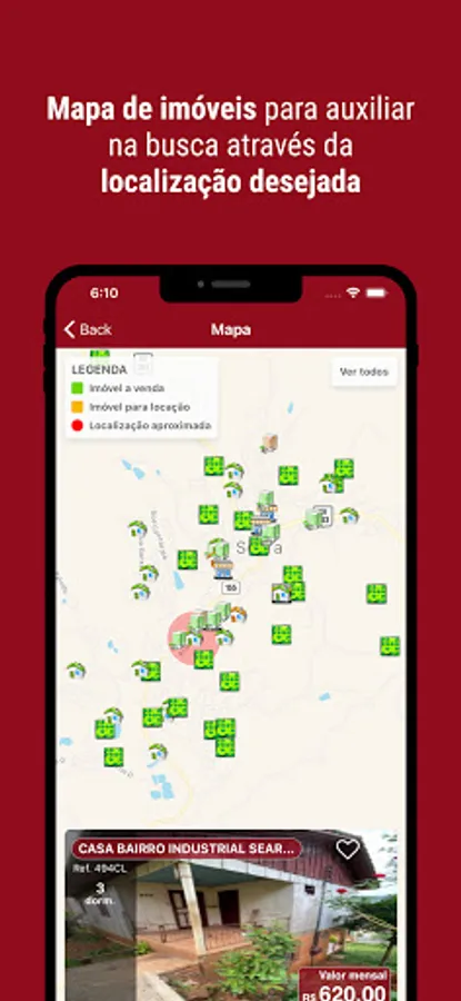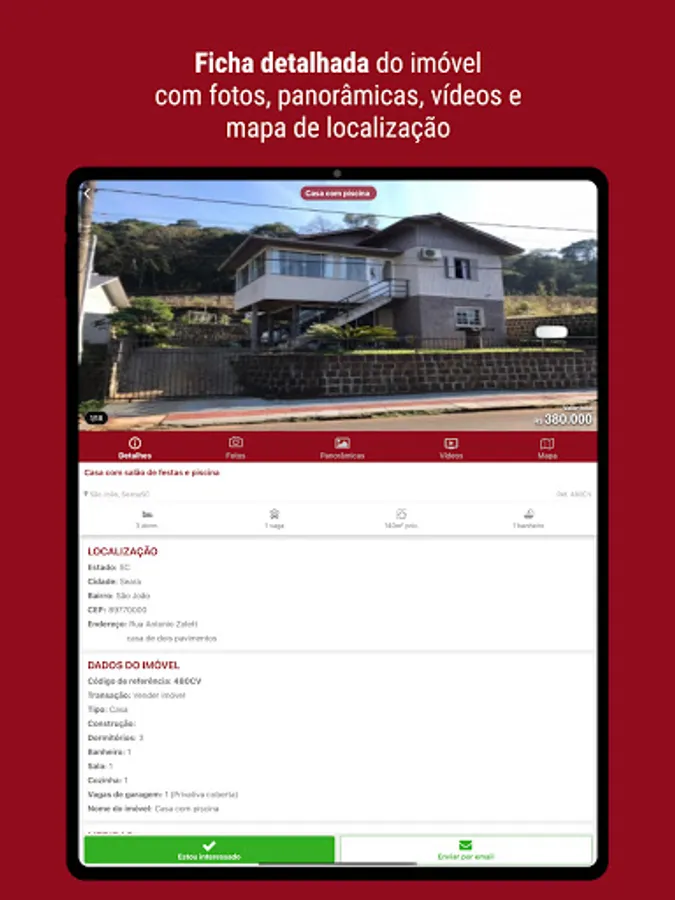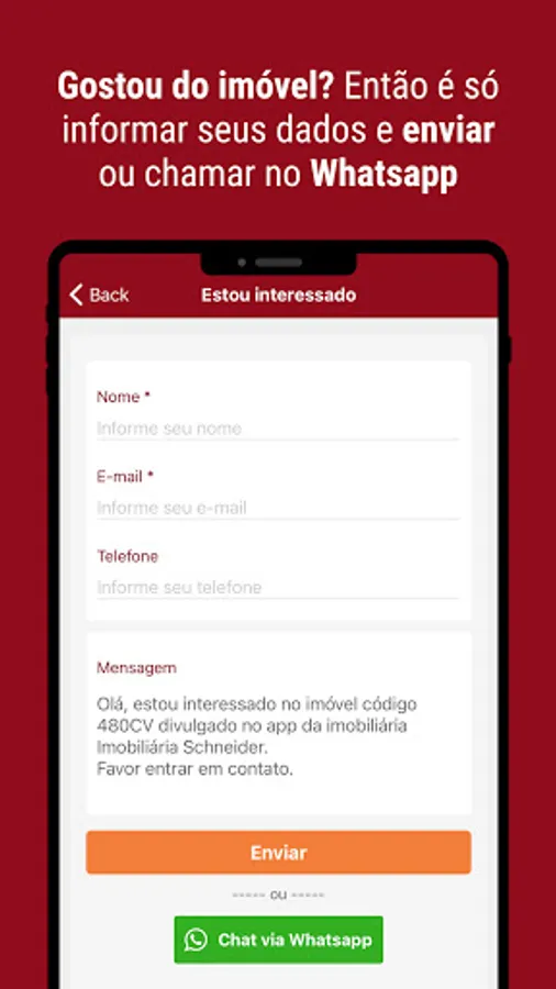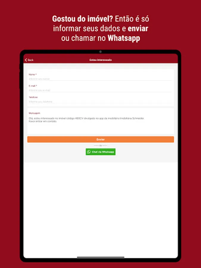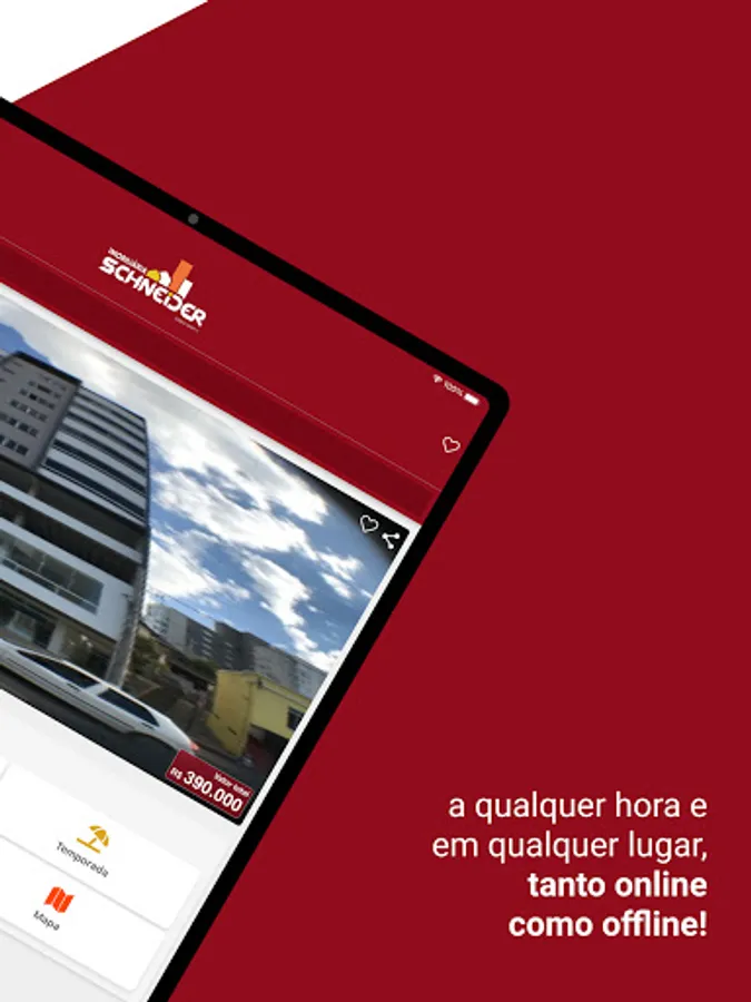 One of the main features and differences of our app in relation to our website and other apps on the market is that our app works online and offline. So, you can access the app anytime and anywhere with or without internet access, saving your data package. In addition to several other advantages such as the map with all the properties to facilitate the search for the desired location, a virtual tour to better understand all the areas of the property without leaving home and also the practicality of being able to choose your ideal property in the palm of your hand and get in touch via WhatsApp to request more information about the desired property.
